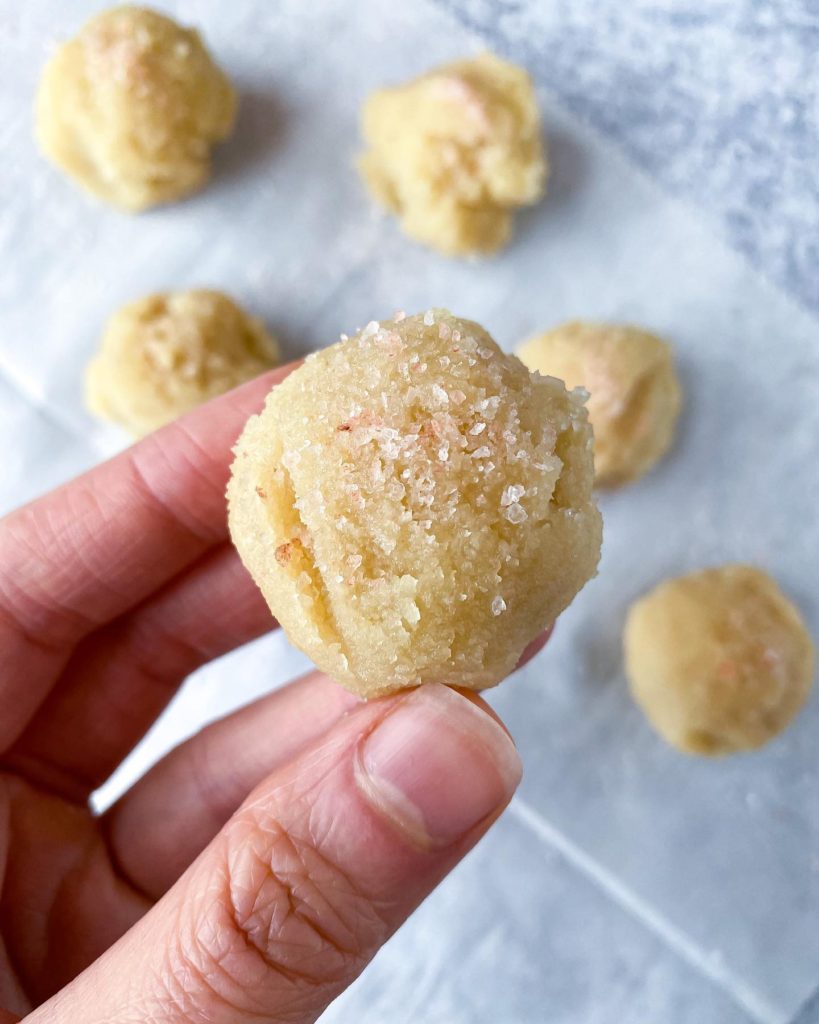 This edible sugar cookie dough, on the other hand? It’s pure magic. By hydrating the almond flour just enough, AKA past the marzipan stage, it soaks up the liquid and turns into something that mimics soft, creamy, scoopable cookie dough. So yes, similar ingredients but a totally different result.