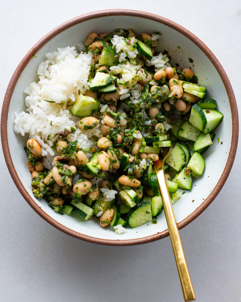 This recipe is my fool-proof hack for an easy weeknight dinner or a lazy meal prep, and you can mix-and-match how you serve these beans to fit your mood. It’s hot and summery right now, so pairing them with crispy cucumbers and white rice felt like the best dinner, but you can also pair them with whatever you have available. These anchovy beans are a chameleon of a recipe, making them a perfect meal to add to your kitchen’s rotation.