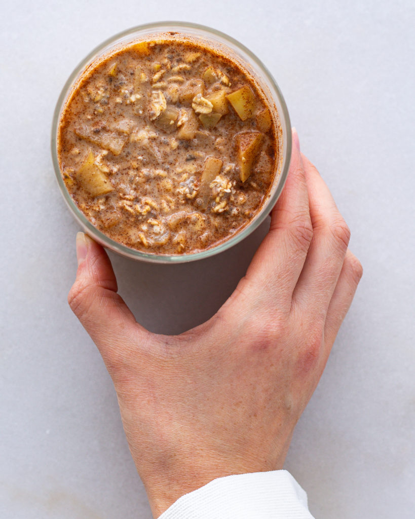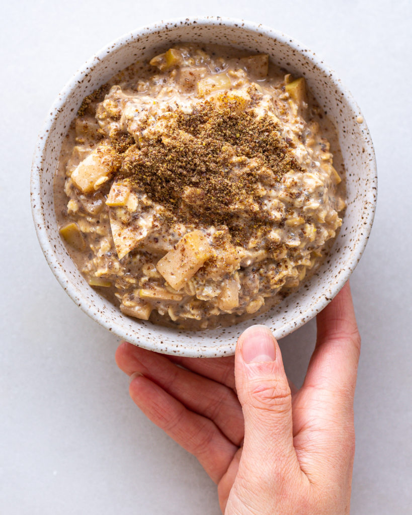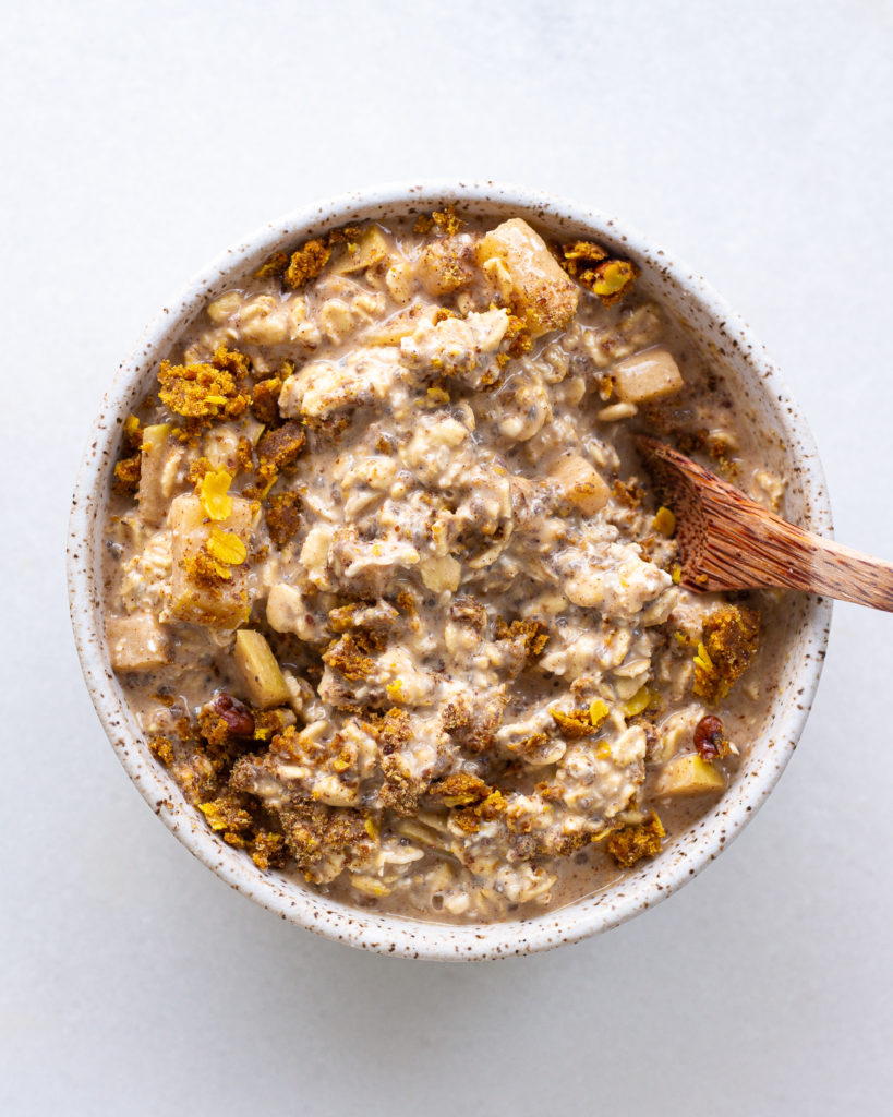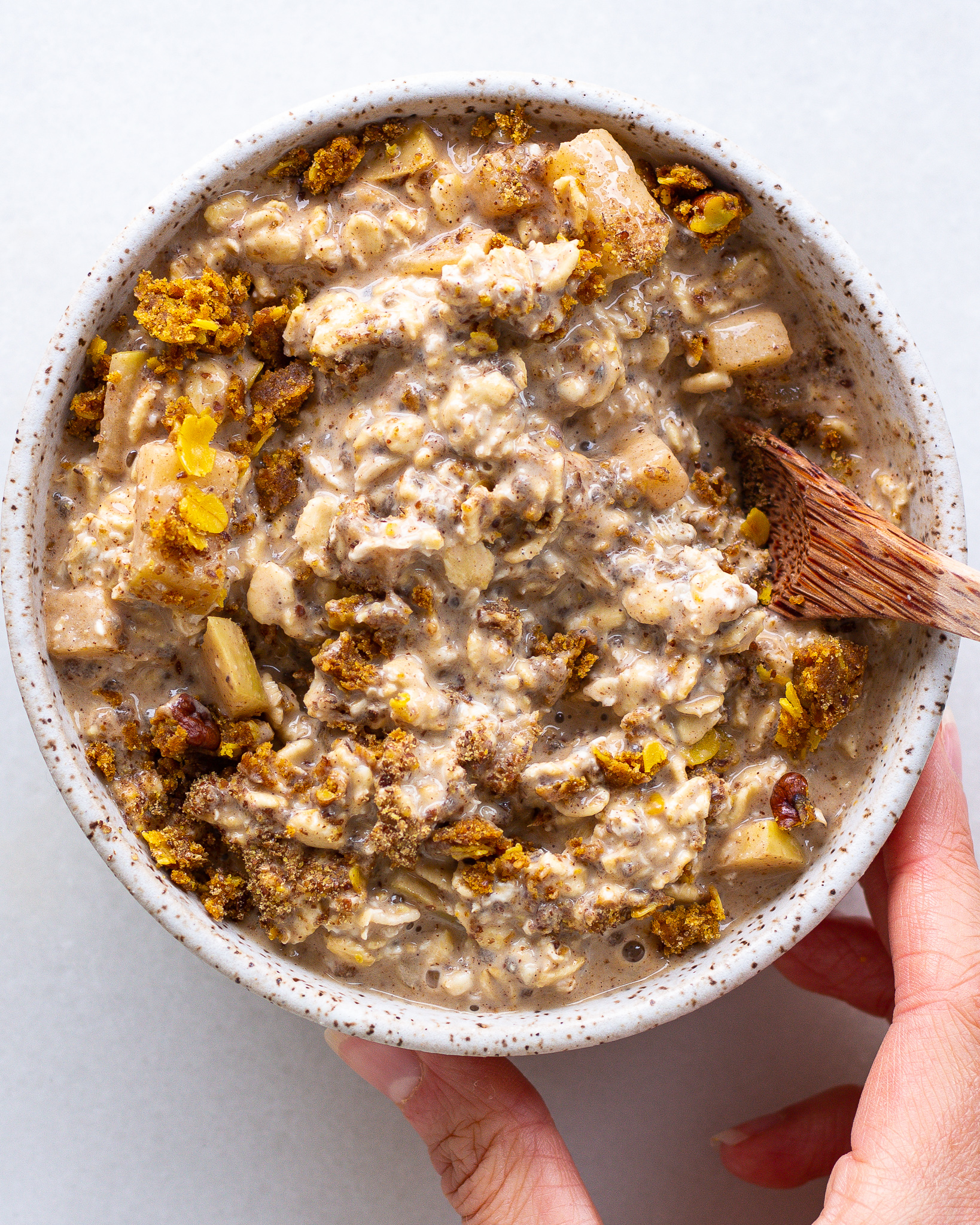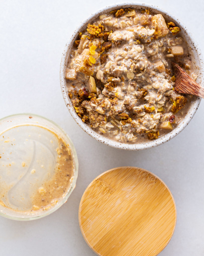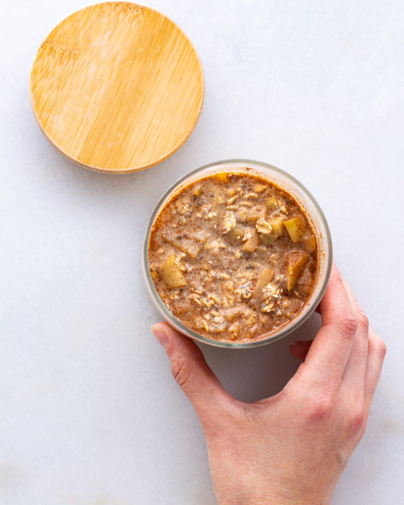 You can probably tell that I love to add some crunch, but really feel free to do whatever speaks to you and your vegan apple pie overnight oats.