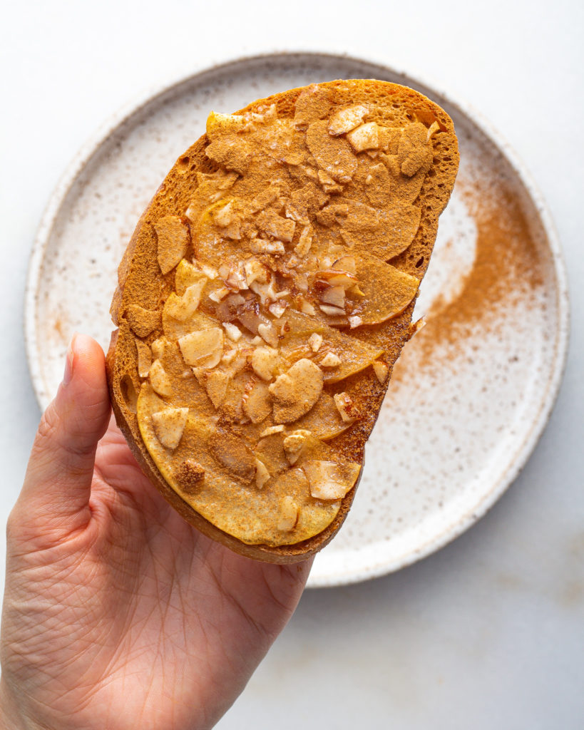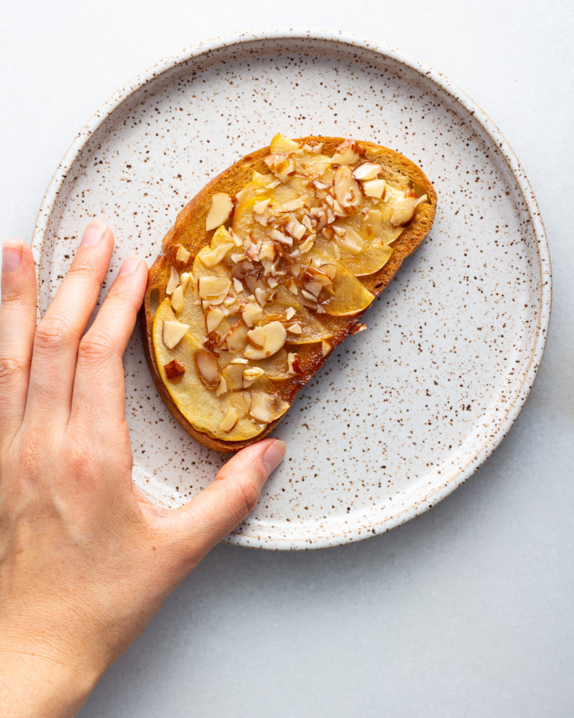 And that’s it for this apple tahini toast recipe! This blog post was short n’ sweet, but it’s just one of those days, yknow?