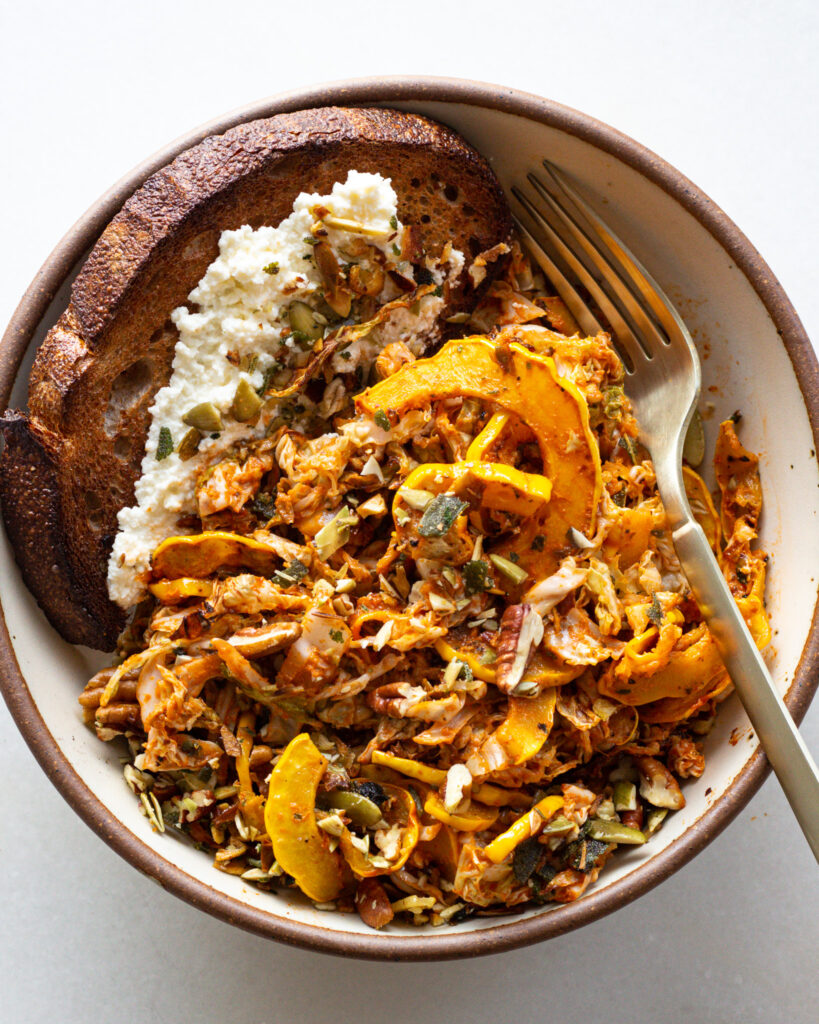 - Let’s talk about why I use cabbage and delicata squash in this recipe