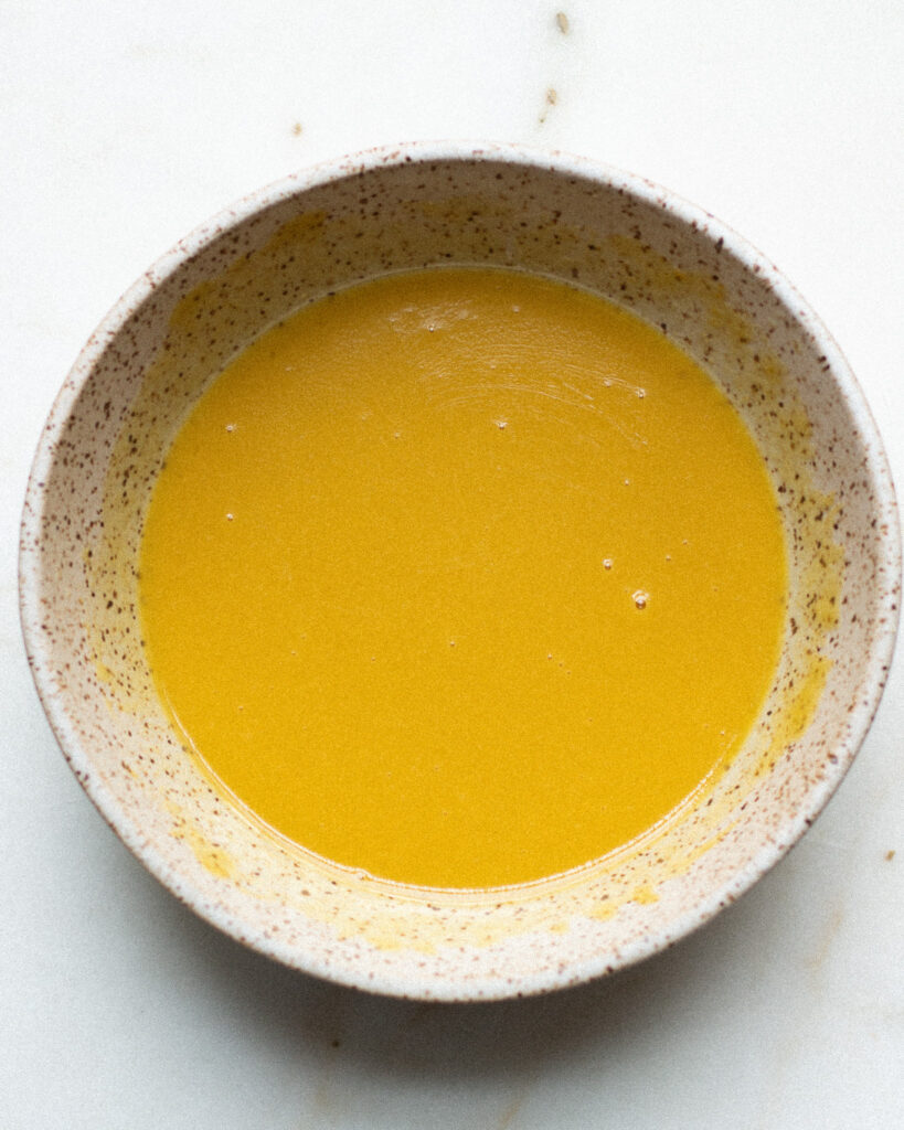 Now my biggest tip to making the perfect honey mustard is whisk together everything but the oil FIRST. Then whisk while drizzling in the oil to emulsify it. It seizes up into my favorite glossy texture, and it is finished in minutes.