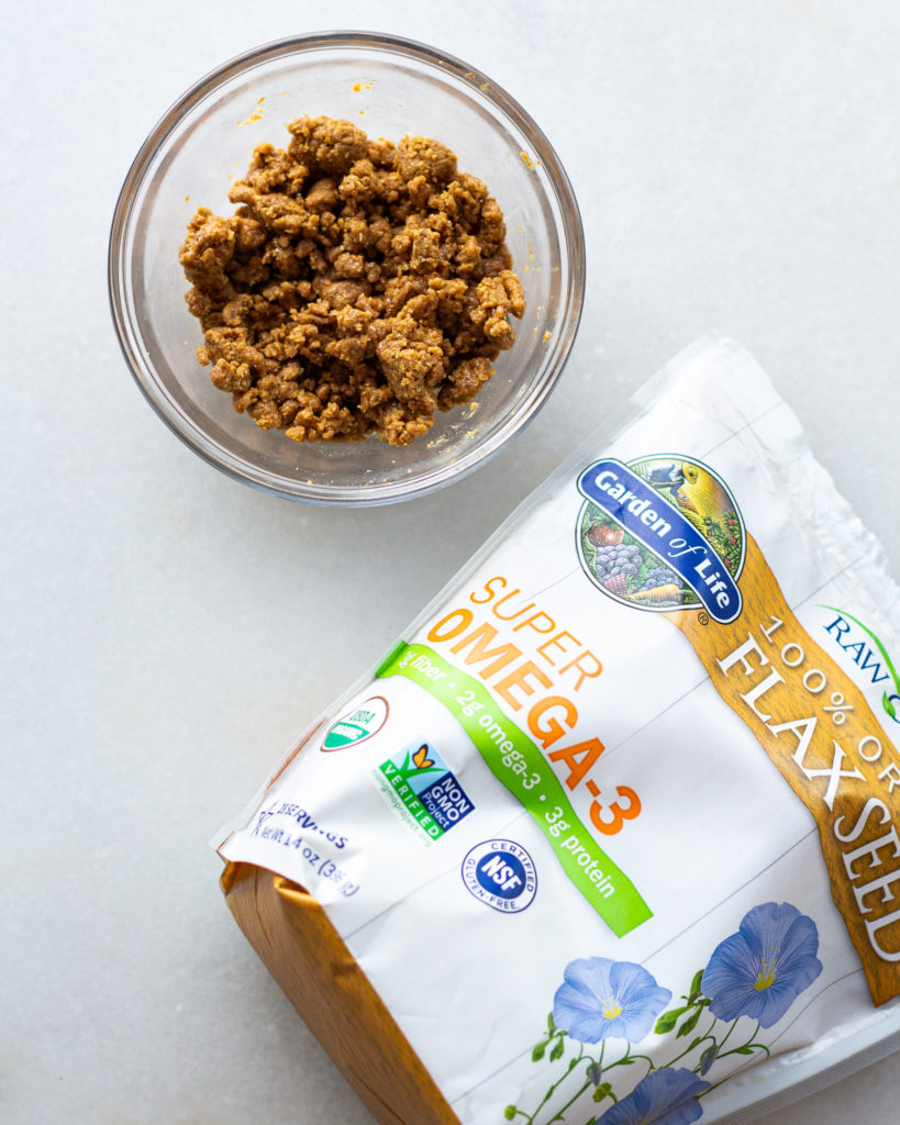 I just discovered my favorites at Garden of Life have a flax seed blend and it is to DIE for. I mix equal parts flax with equal parts almond butter and it makes the perfect crumble.