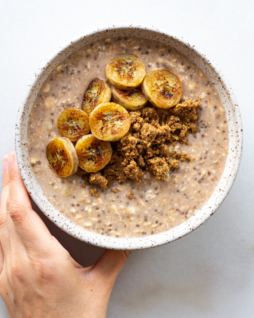 What’s great is these oats are simple, low in added sugar (we only rely on the banana here!) and vegan. Plus they are super customizable. I highly endorse adding any and ALL toppings you want for this banana overnight oats recipe. You don’t *have* to be extra and grill the bananas like me, but it’s so so fun if you do.