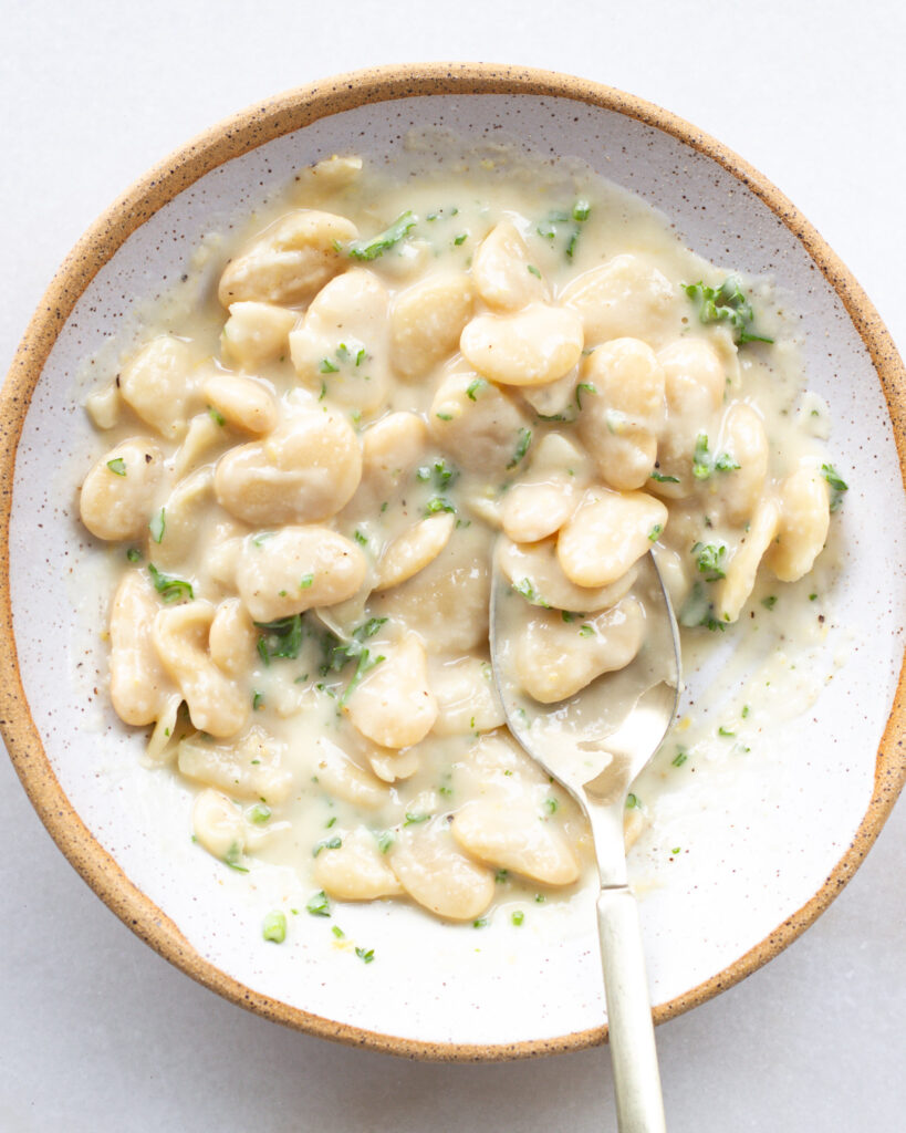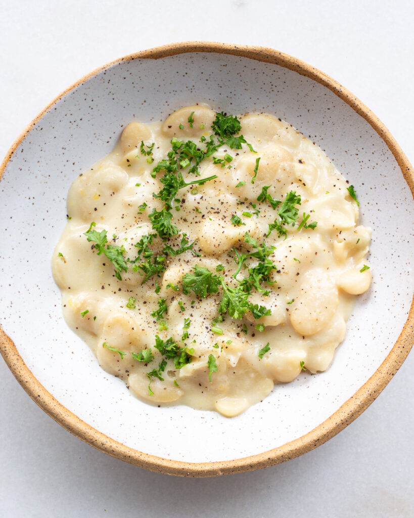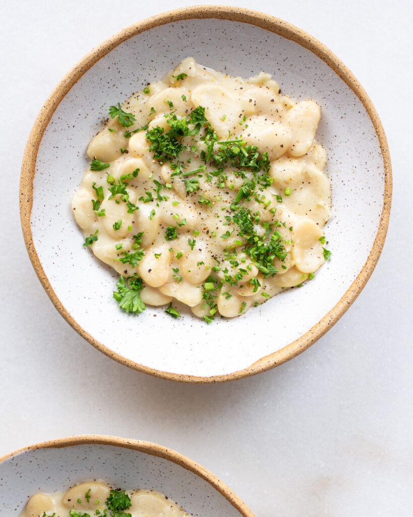 This simple, easy beans a limone recipe is a take on pasta a limone, with of course a few liberties taken. What this leaves you with is a creamy, dreamy lemony sauce spooned around butter beans. Just a few of my absolute favorite things. It’s easy to make, quick to assemble and done in 30 minutes. This is one of my most satisfying meals, and of course, if you choose to add pasta to the mix, I wouldn’t blame you 🙂