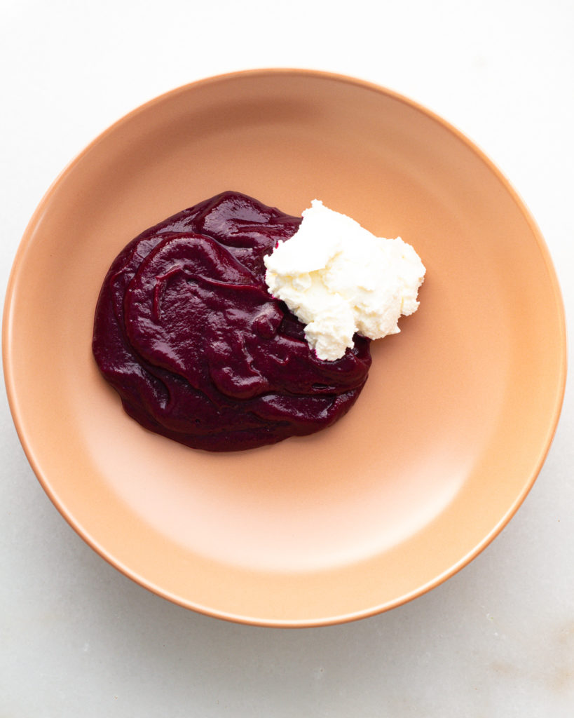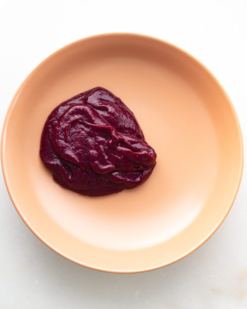 In order to purée these beets, you need them as soft as possible. I recommend roasting them at 375F for 45-60 minutes or until they are soft. If you want to do this ahead of time, you can totally cook the beets then store them in the fridge to use in this recipe at a later date.