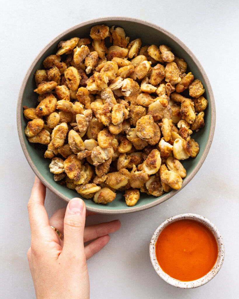 - Serve as a crunchy snack alongside a fun dipping sauce – buffalo sauce, barbecue and any aiolis are delicious here and give a really football-game-day vibe…but with beans
