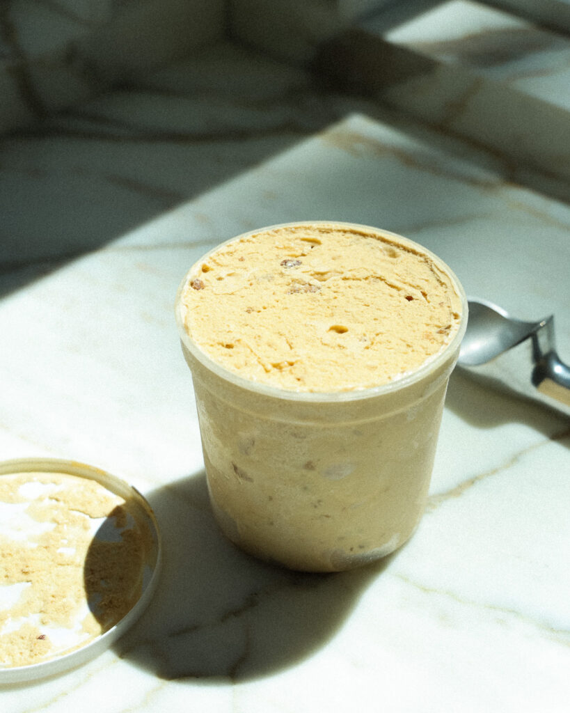 Strain again (to catch any hardened butter bits), then churn until it looks like soft serve. Transfer to a container, freeze until scoopable, and get ready to have an ice cream experience you just can’t get in the store.