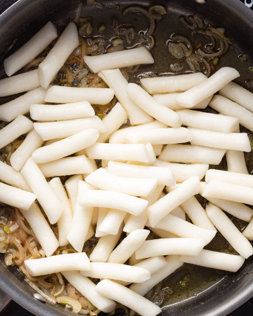 - 1 lb bag frozen tteok, you can find these at H-Mart or a Korean grocer