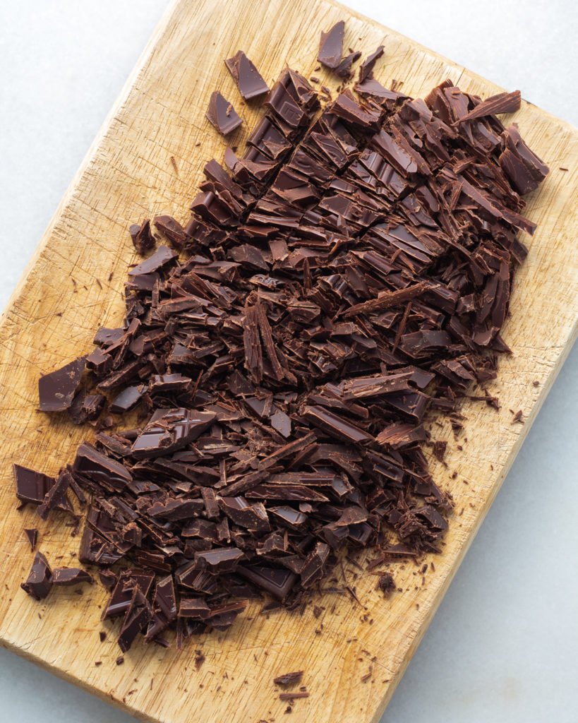 - Chop the chocolate and add to the bowl. Mix well.