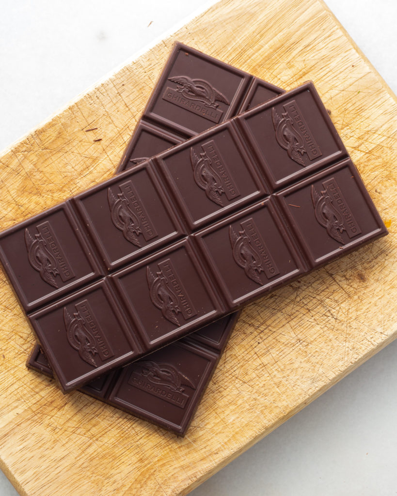 - 113 grams dark chocolate, about 1 bar, chopped