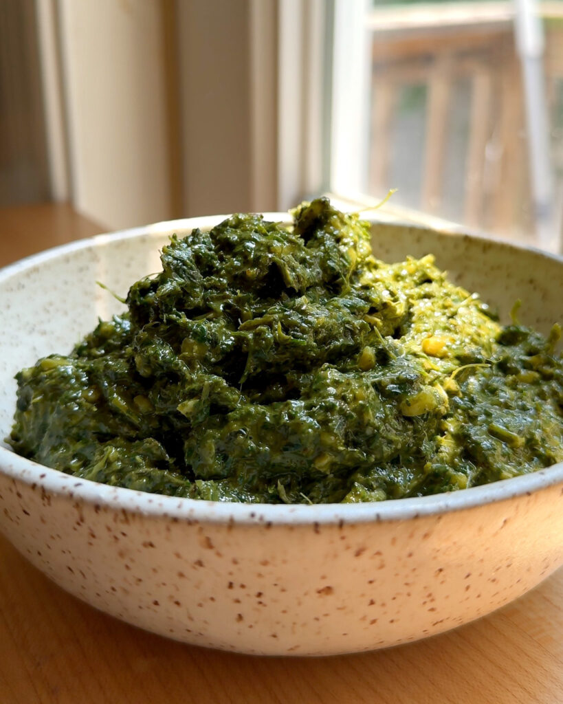 This recipe yields just under 1 cup, perfect for keeping in the fridge and using all week long or freeze it to use later. Scale it up or down depending on what you have, but trust me, once you start making pesto like this, it’s hard to go back.