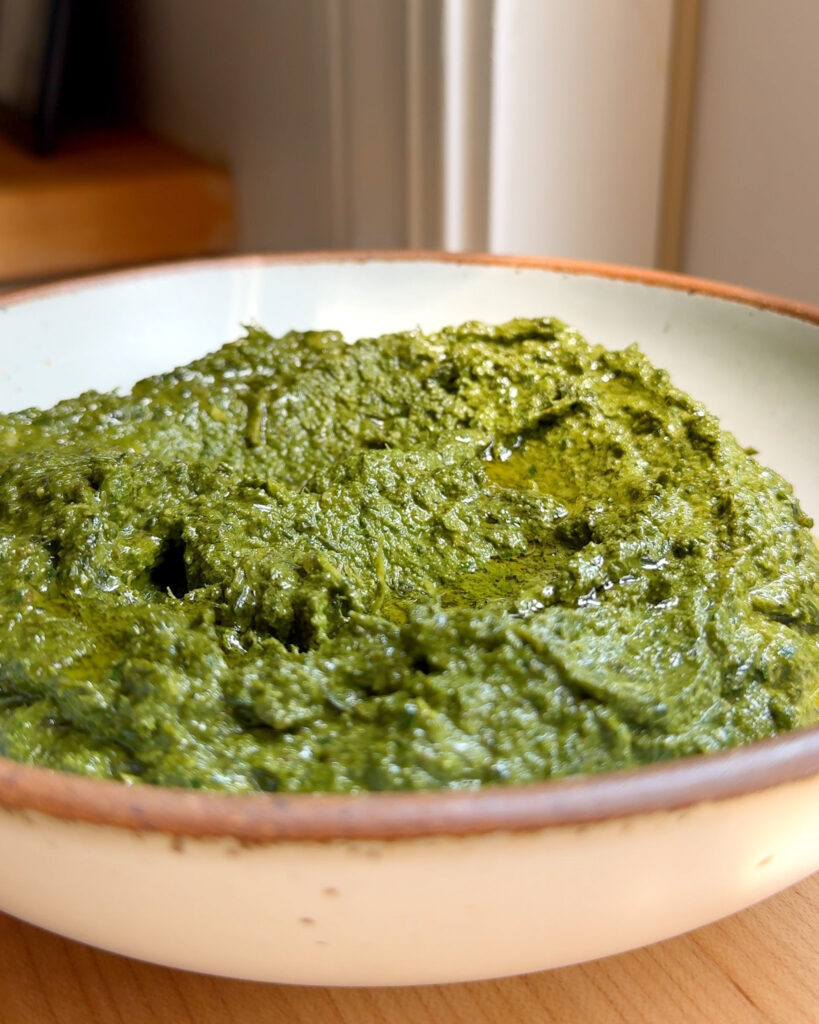 Carrot Top Pesto is one of those recipes I make on repeat, not just because it’s easy, but because it’s one of the best low-waste sauces you can have in your back pocket. If you’ve ever wondered what to do with carrot tops, this is it. No extra herbs required, no other greens needed – carrot tops are the only green and the star of the show here.