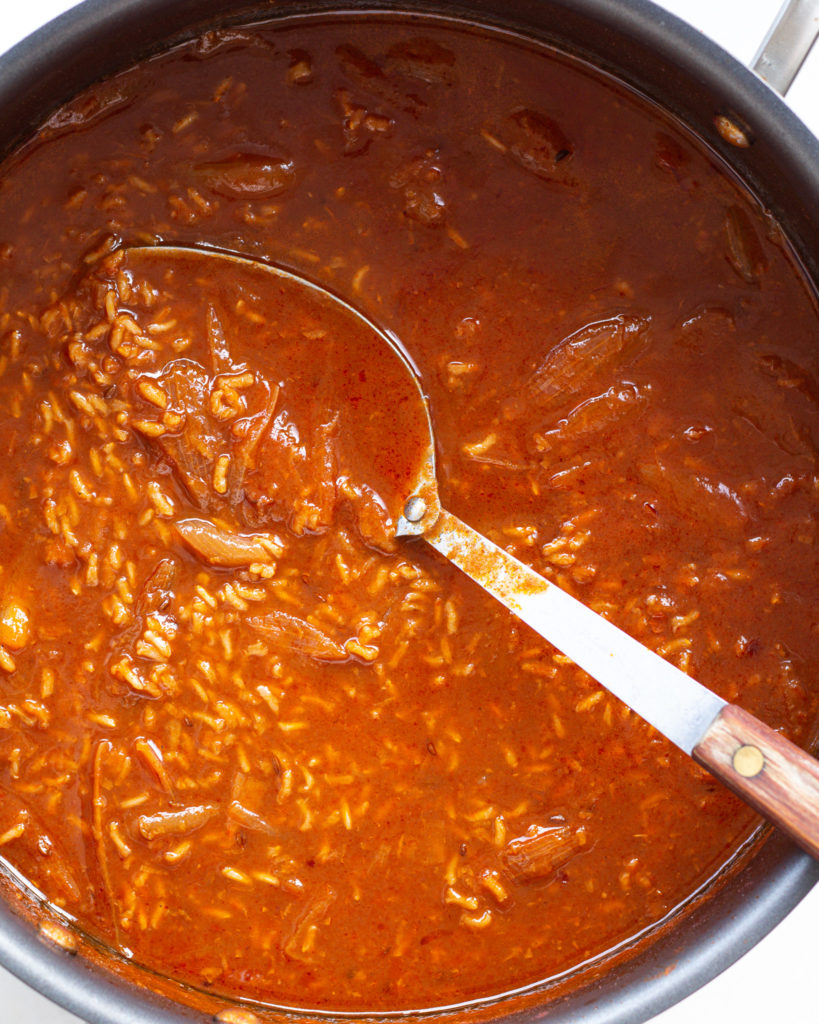 - You’ll know the soup is done when it has noticeably thickened with the brown rice. Remove from the heat.