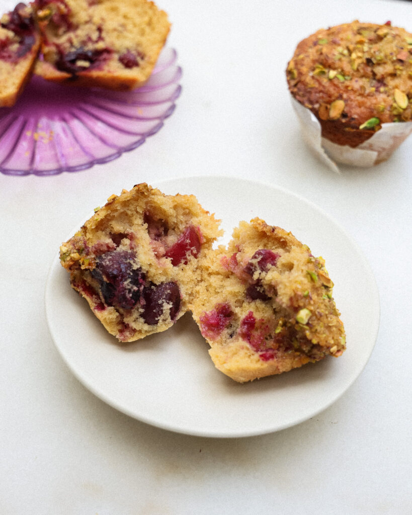 Delicious! I added some pistachios into the batter for a little more texture. Love jammy cherries in these muffins!