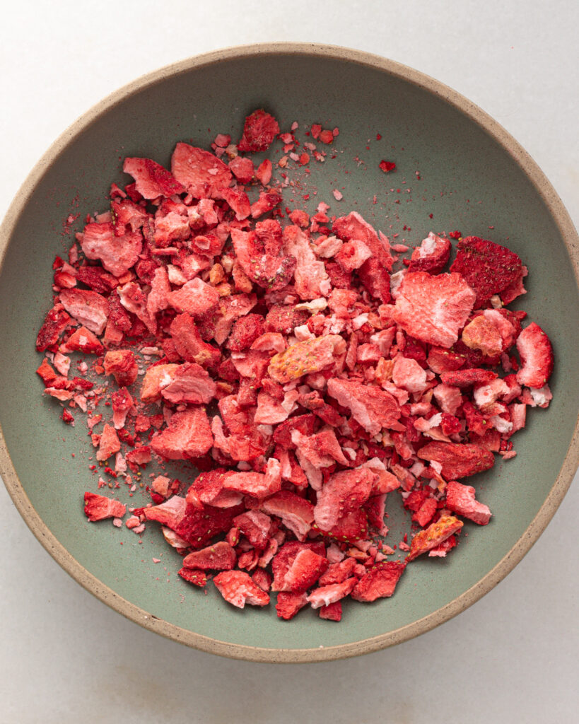 Using freeze-dried strawberries over the real thing might seem counterintuitive, but freeze-dried strawberries are the BEST way to get the absolute most strawberry flavor in anything you are baking.