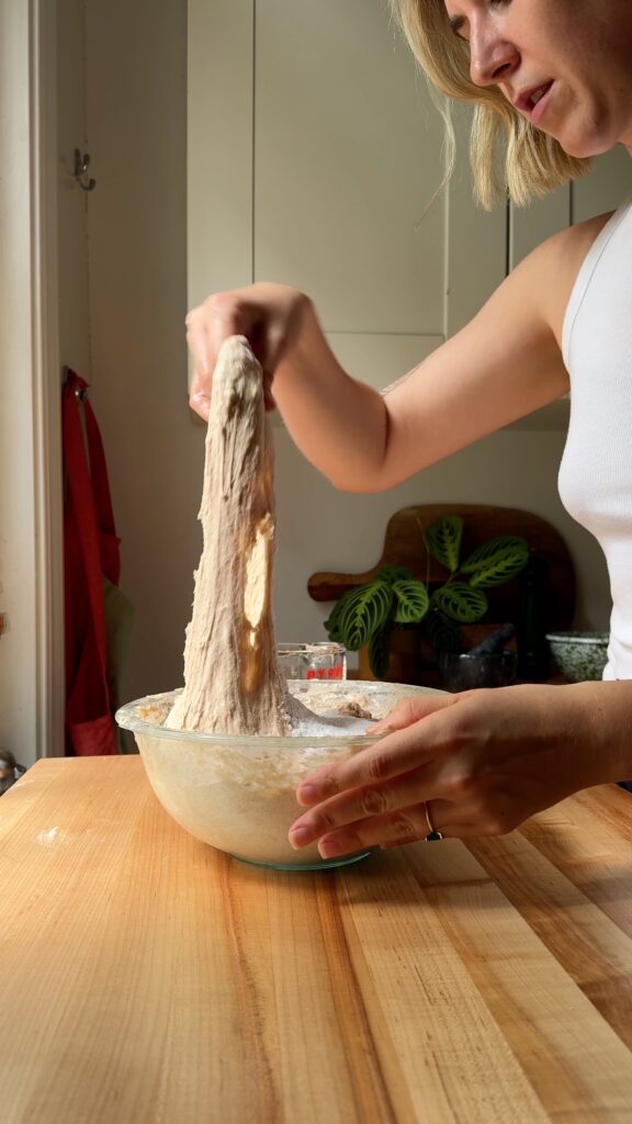 I could talk about sourdough for DAYS, so if you are looking for allllll my sourdough information, it’s best to reference this blog post first. This recipe will have everything you need to make a loaf, but if you are wondering the “how and why” behind it (and looking for a helpful YouTube video!), that’s the post to start at.