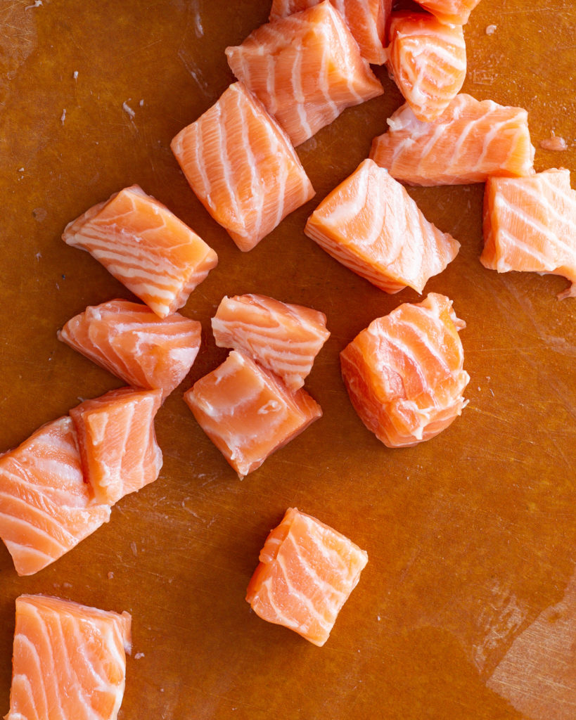 The salmon can be skin-on or skin-off, just note that we are flaking the salmon from the skin, so you won’t be consuming any skin in this recipe.