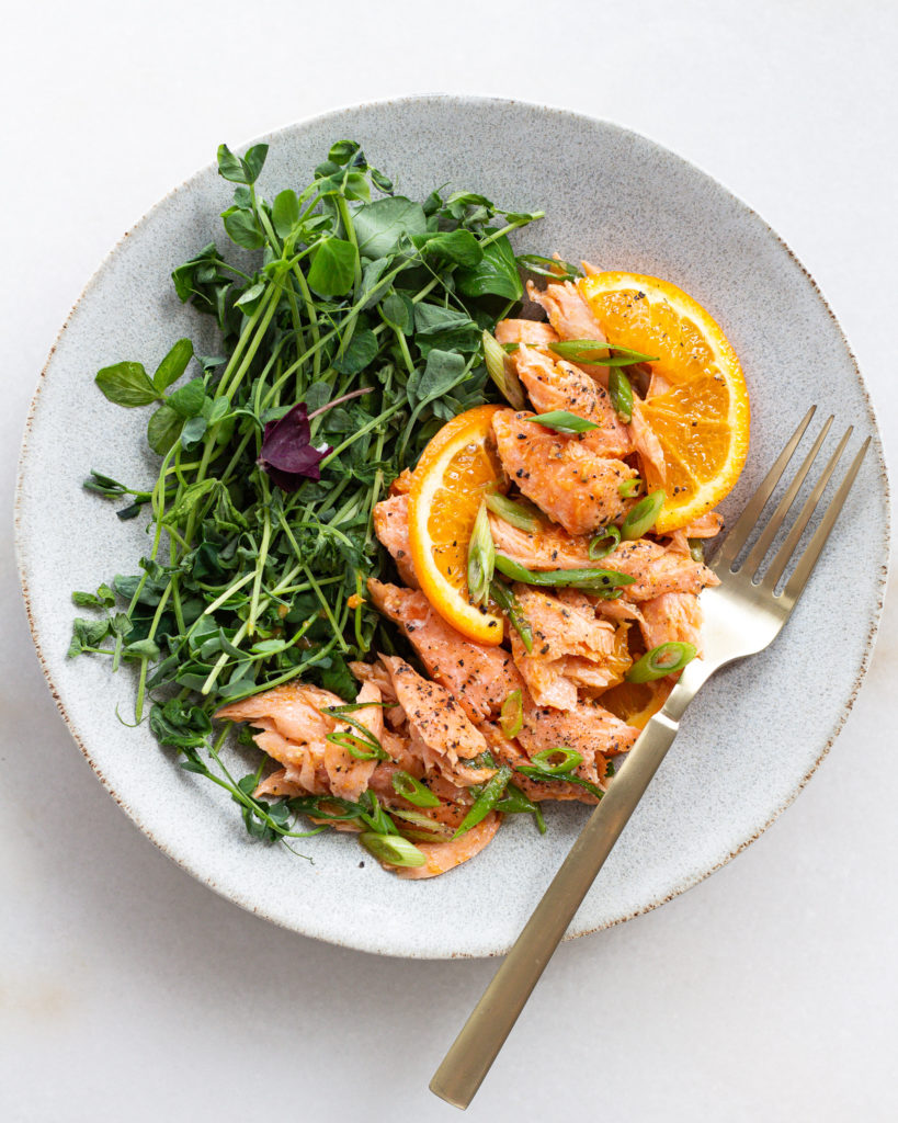 - Top the salmon with scallions, sesame seeds and any remaining orange slices as a garnish. Serve immediately!