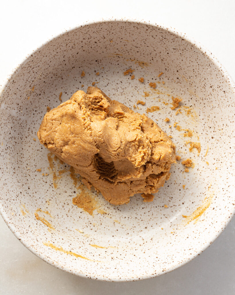 - In a medium bowl, mix together almond flour, protein powder, date syrup, coconut oil, vanilla and salt until you get a tacky dough. See below for more details and tips!
