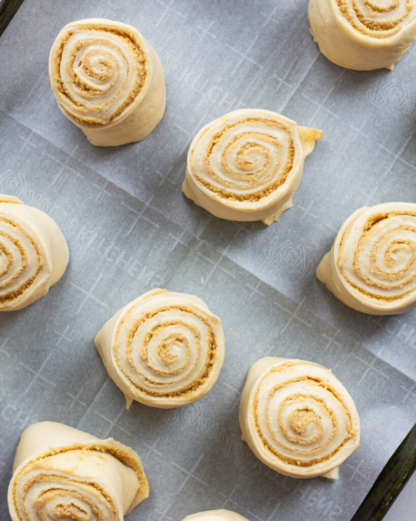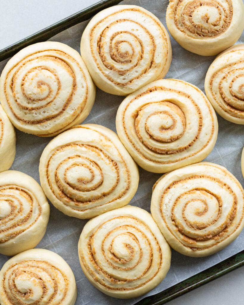 The dough recipe was chef’s kiss. I’m definitely in love and no matter what kind of cinnamon roll I make this is now the go-to recipe. Also tucking a bit of the dough under the rolls is genius!