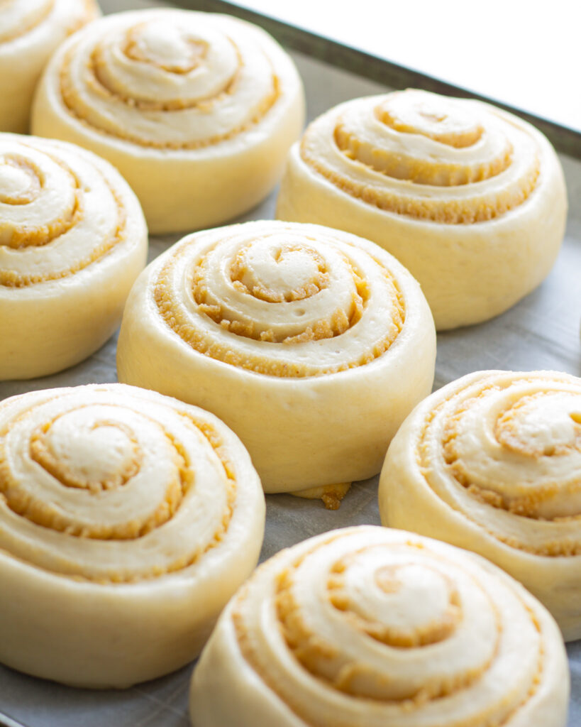 After rolling and cutting them, they will need an additional 2 hours to proof. You’ll want them nearly 50% bigger, with a nice, puffy look to them.
