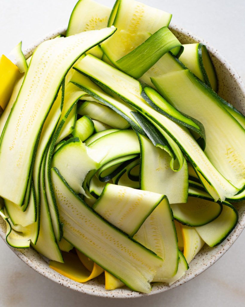 - 4 large zucchinis or courgettes, a mix of green and yellow