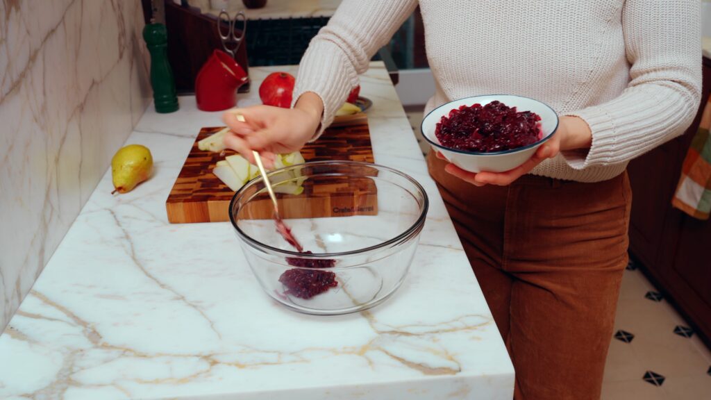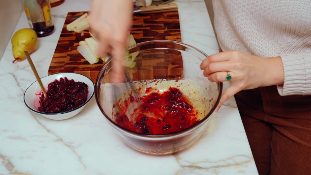 Since our cranberry sauce is already tart, juicy and filled with baking spices, it really doesn’t need much else to become a smooth, emulsified and layered dressing. Here’s everything you want to whisk together: