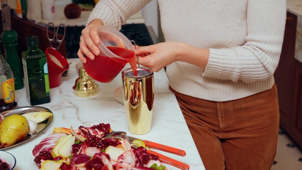 - Before serving, strain the mixture through a mesh sieve to remove any cranberry pieces.
