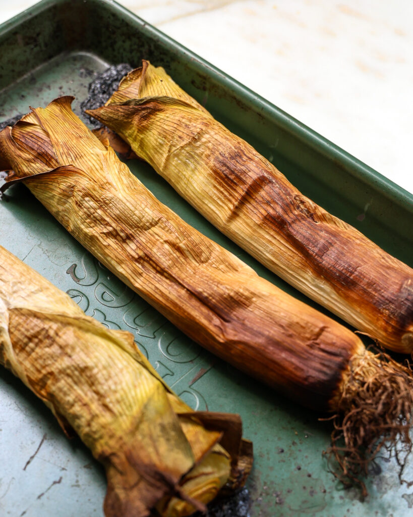 The leeks end up tasting similar to caramelized onions, and tip: you can save the charred outsides to use for vegetable stock. It’s delicious.