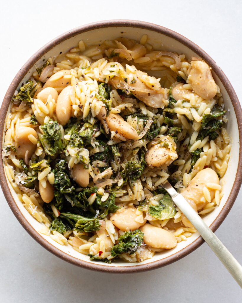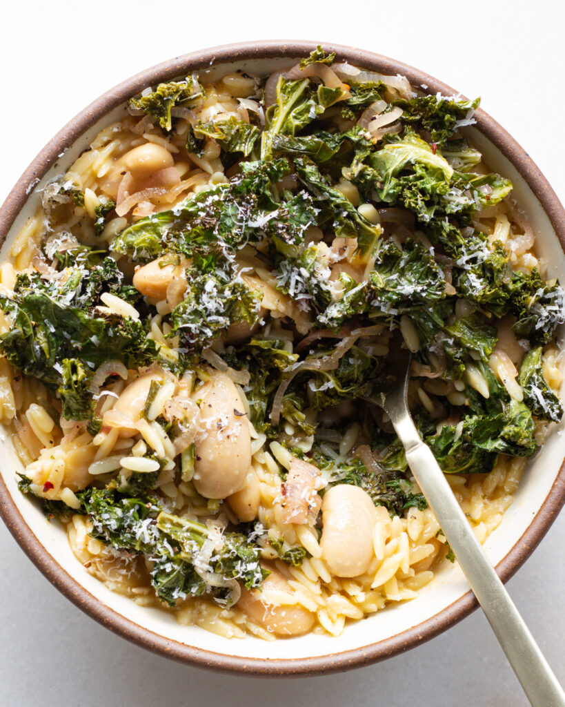 Wow this was literally so amazing!! I’ve made it three times in the last two weeks and my husband and I love it so much. I use a whole pound of dry white beans per every 16 oz packet of orzo because I love beans haha, and while its definitely more beans than orzo, I think its still delicious. I also use a lot more parmesan… I dont bother crisping the kale in the oven because we save a lot of leftovers so it gets soft anyways, but I think it works all mixed together. Overall, this is my new favorite dinner recipe (even though I make it with vibes rather than strictly following the recipe now).
