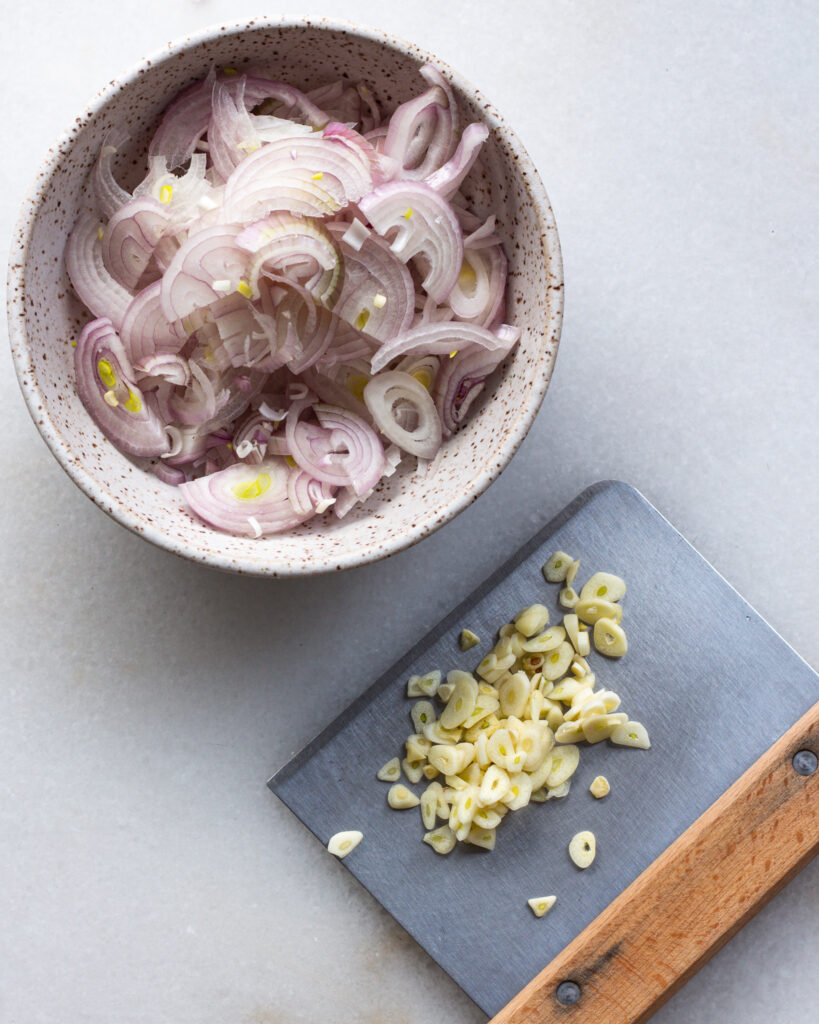 - What to substitute for shallots – red onion is always a great sub, or if you have an extra yellow onion, that can also do the trick!