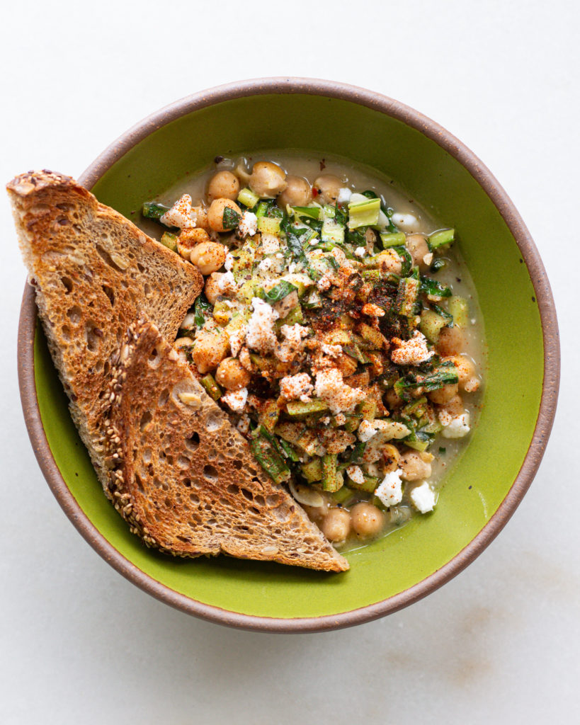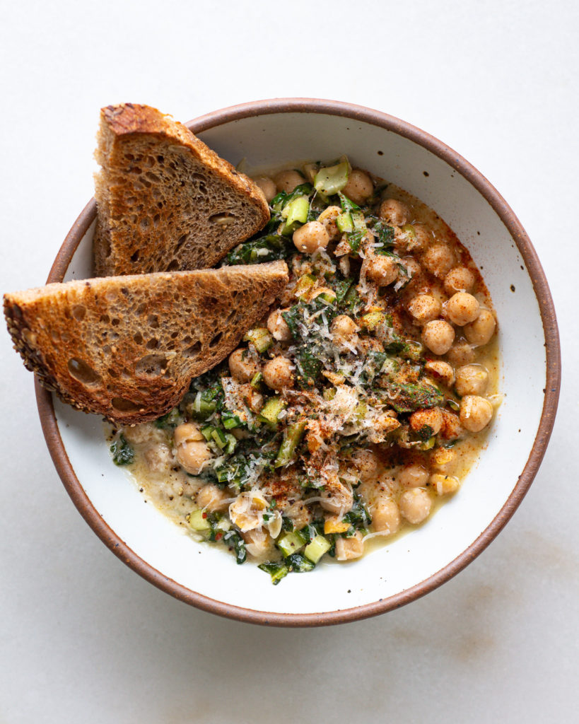 I just got back from vacation (itineraries coming soon!) and all I wanted was something filling, warm, simple and comforting – and these creamy tahini chickpeas with bitter greens immediately came to mind. The ingredients are simple, which feels needed, especially with grocery store prices going up. And what I love is this bowl covers all the major food groups. It’s a complete dinner that you can adjust, tweak, bulk up, or simplify down to fit your needs.