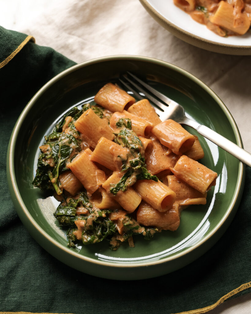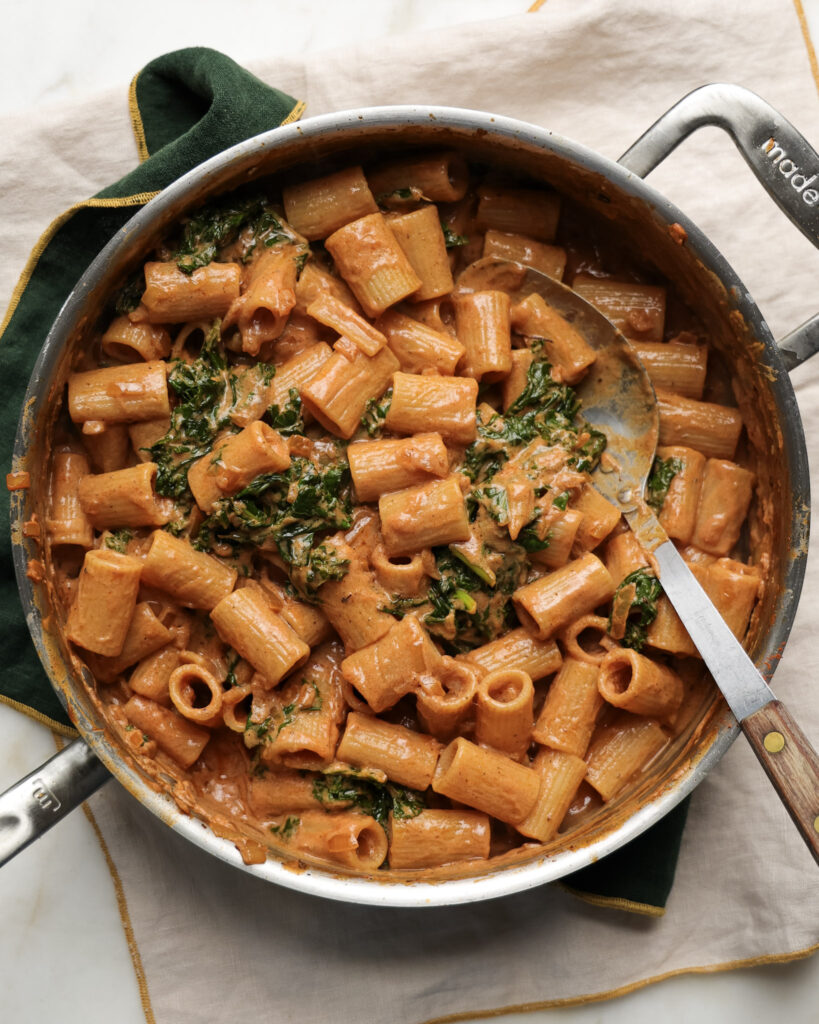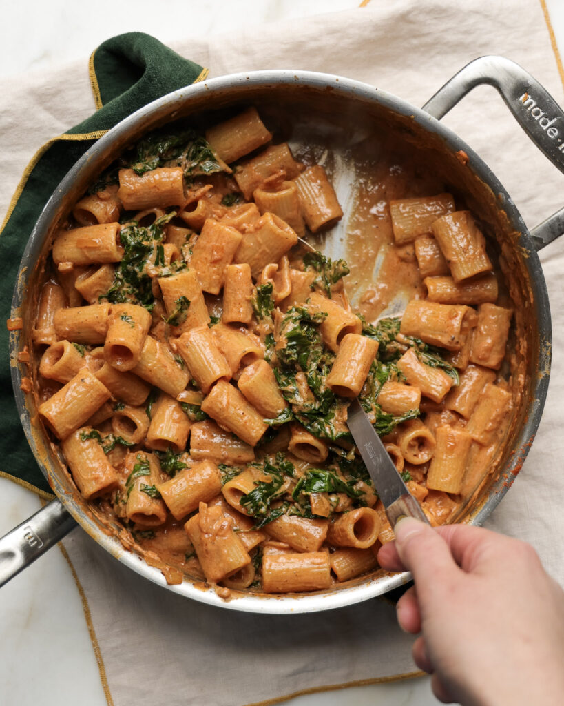 It’s also wildly low-effort. Everything comes together in mostly a blend-and-simmer situation. There’s no roux, no long cook times, nothing fussy. Just a very good, very creamy pasta that feels a little unexpected in the best way.