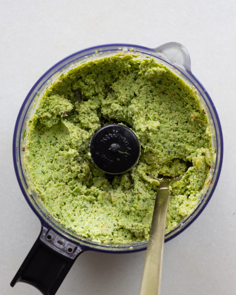 The one thing to note about this multifunctional spread is that edamame doesn’t work like other beans. If you’ve ever tasted it, it has a bit of a waxiness to the soybean texture. This isn’t a bad thing, it just means this edamame spread takes a few more minutes to get smooth. So don’t be afraid to really let your food processor work for 1-2 minutes! Get it to the texture in the image above and you won’t regret it.
