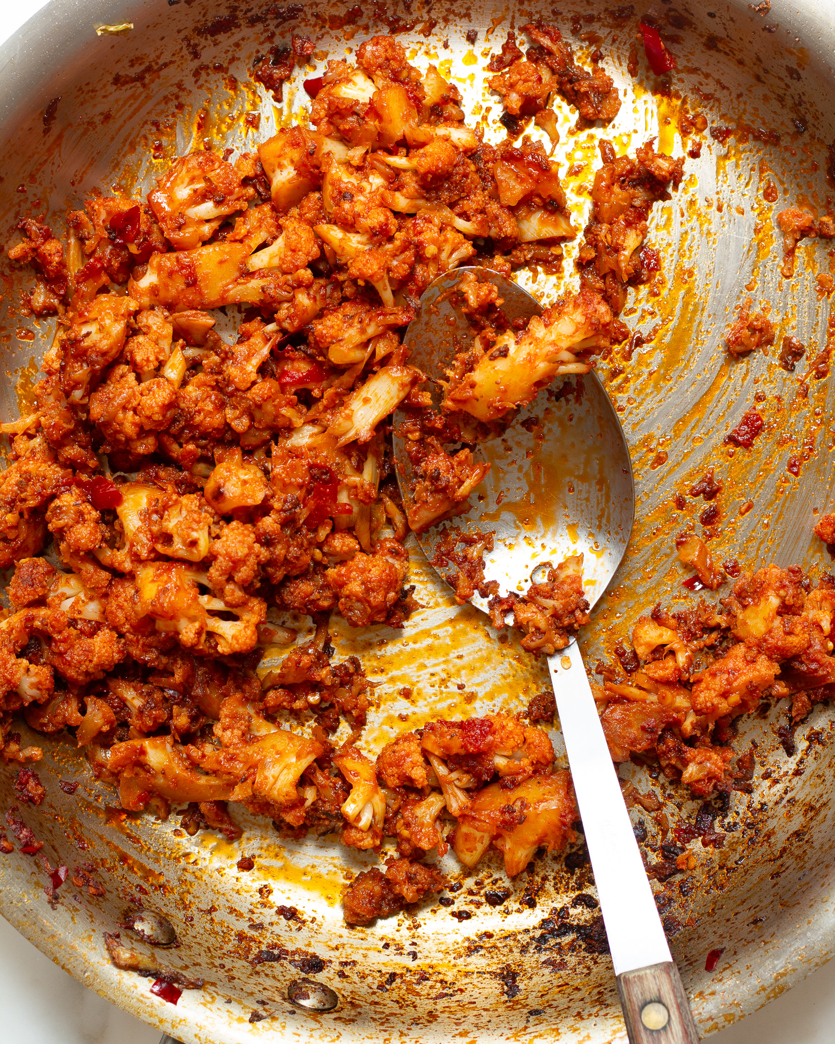 - Gradually whisk the flour in with the egg and cauliflower, until you for a rough dough. Wrap the dough tightly in plastic wrap and let it rest for 20 minutes.