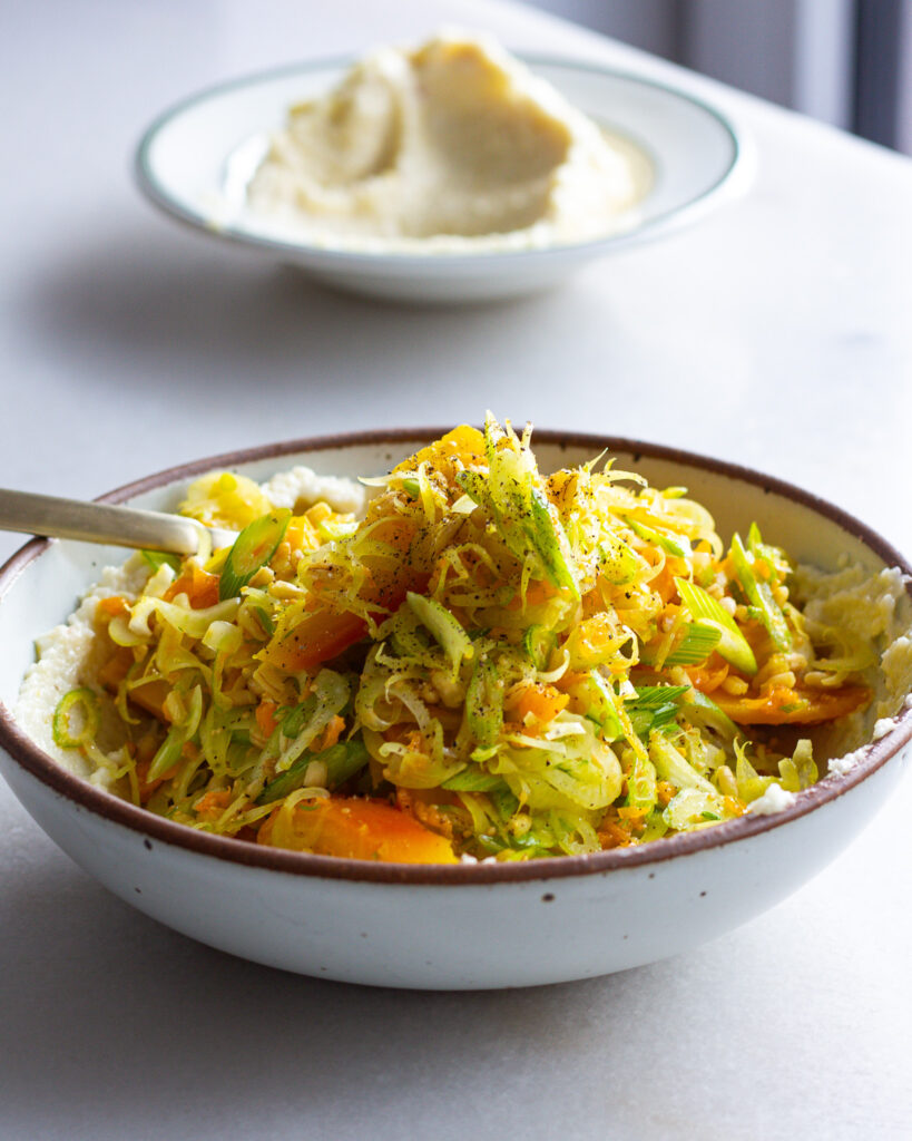 It’s a dream of textures and flavors. And yes, there are some unfamiliar elements in here, but once you try them or find them once, you’ll be adding ground cherries (AKA golden berries!) and Toum (a Lebanese garlic spread!) to your daily rotations. Read on for more on how to make this perfect salad, and how to incorporate these simple techniques into your salad-making life!