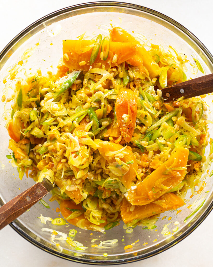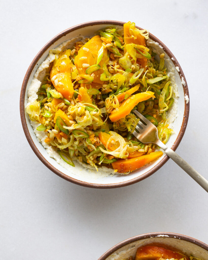 - 1 1/2 cups cooked barley or farro