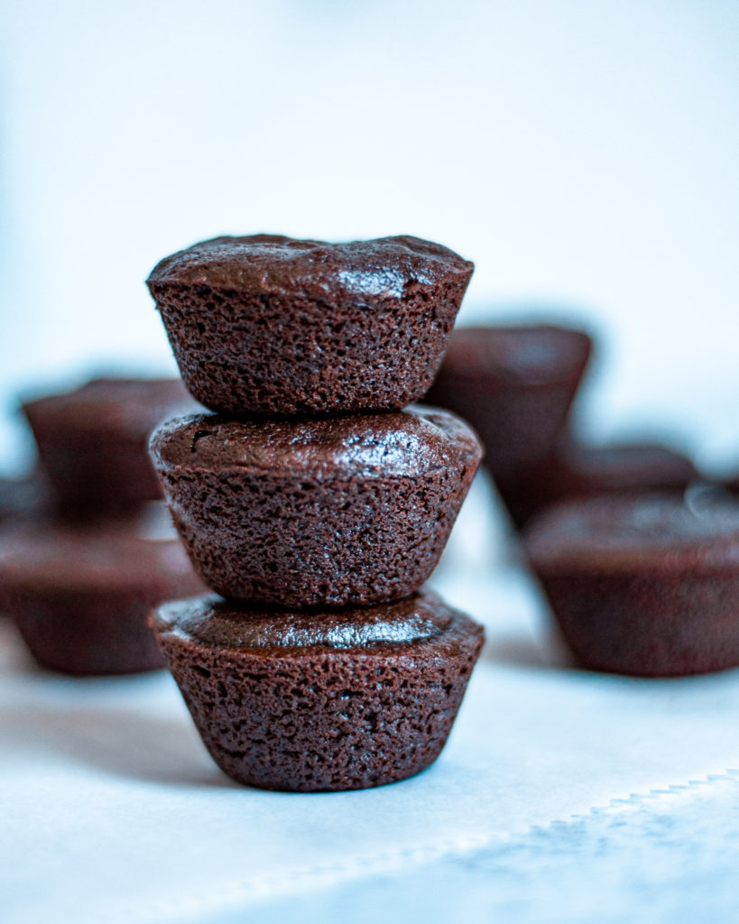 This recipe is designed for a mini muffin tin, but you can also use a full-sized muffin tin, or even make them into brownies! They’ll be delicious any way you do it. And will totally help you get your brownie fix!