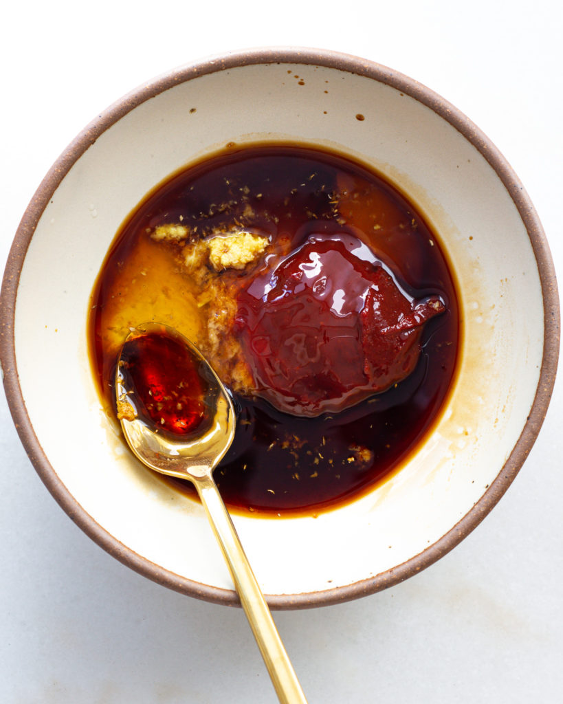 I LOVE gochujang and I hope you feel the same way about it that I do. It is a Korean red pepper paste that is FERMENTED. A true gem. The fermentation gives it a unique flavor that you can’t replicate with other condiments.