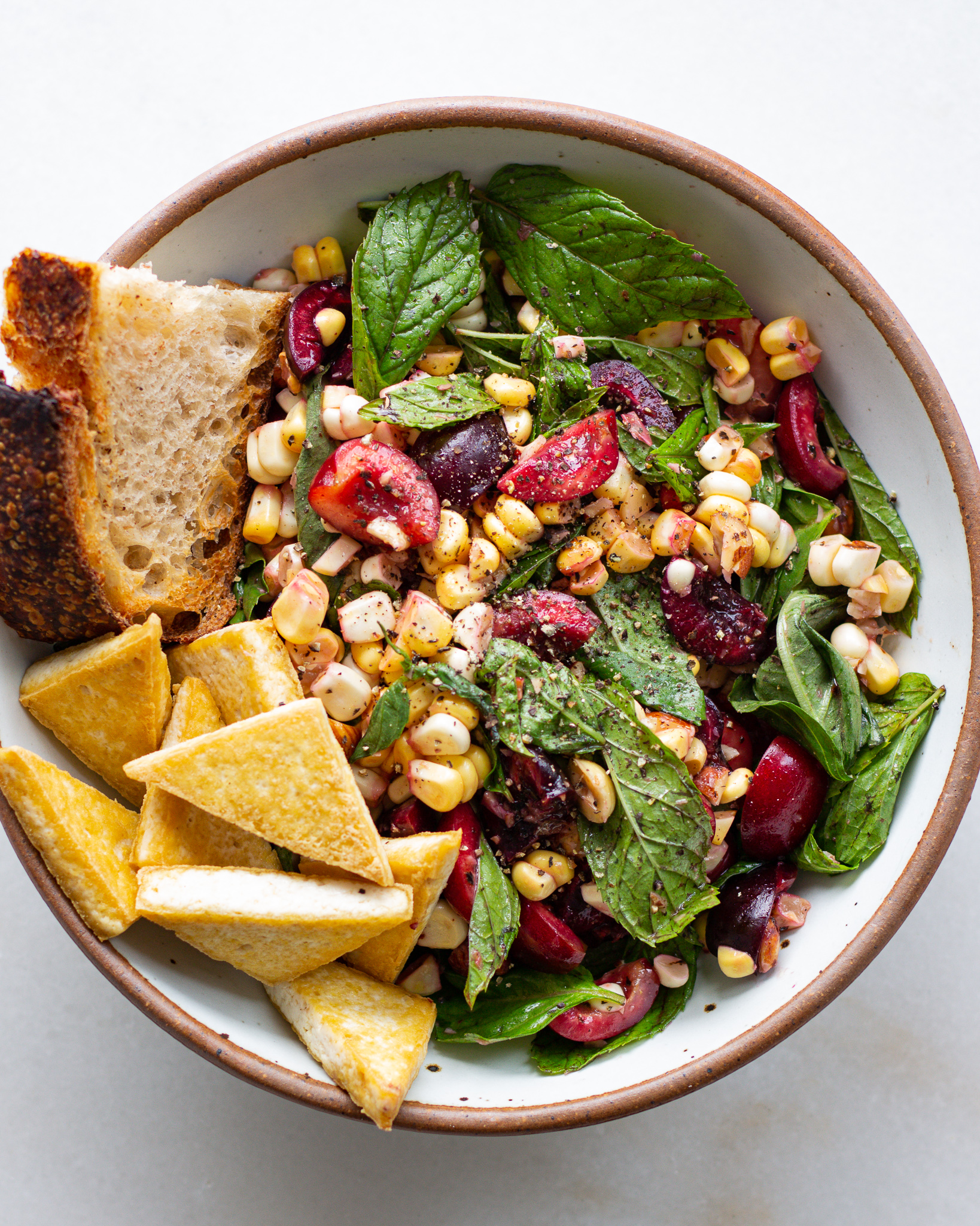 Cherry & Corn Summer Salad with Hazelnuts, Basil & Mint