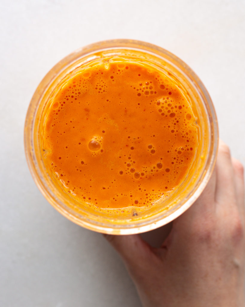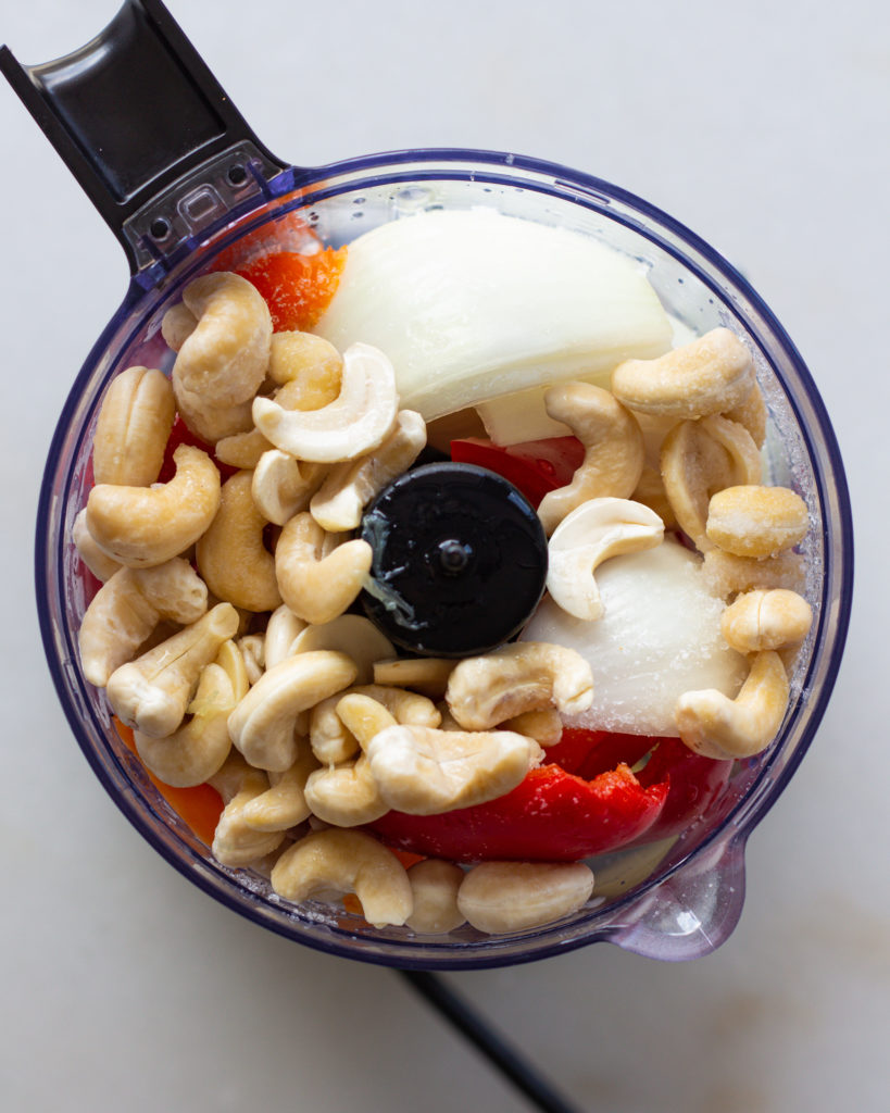 The base of this creamy sauce is mostly vegetables, and the habanero gives it a much needed kick, while the cashews provide all the creaminess we know and love.