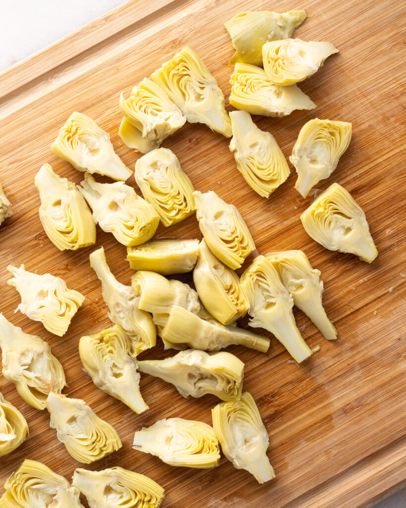 - 2 14 oz. cans of artichoke hearts, drained and rinsed