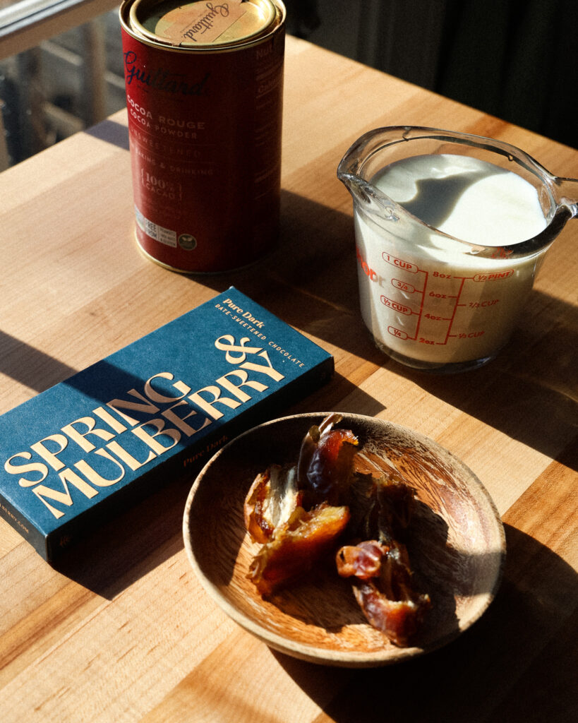 - 10 grams date-sweetened chocolate, I like Spring & Mulberry