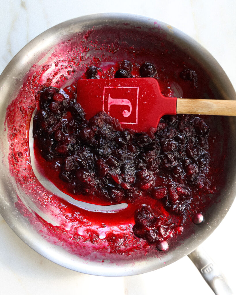 This recipe has a lot of steps, so I get it – for a cookie it can be a lot! One of the bigger parts of this recipe is making your own cranberry sauce to swirl into the cookie. It only takes ten minutes, but I get it if you want to go the store-bought route.