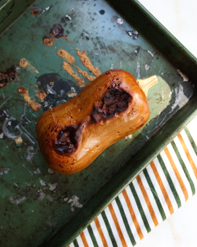 The perks of honeynut purée is that you are really going to maximize your flavor. Honeynuts are naturally concentrated in flavor (it’s because of how the seed was designed, it’s a very cool fact about its agricultural breeding), so they are sweet, custardy, and like butternut squash times ten. The one downside is you have to roast them to get that sweet purée, so it does take a bit more time.