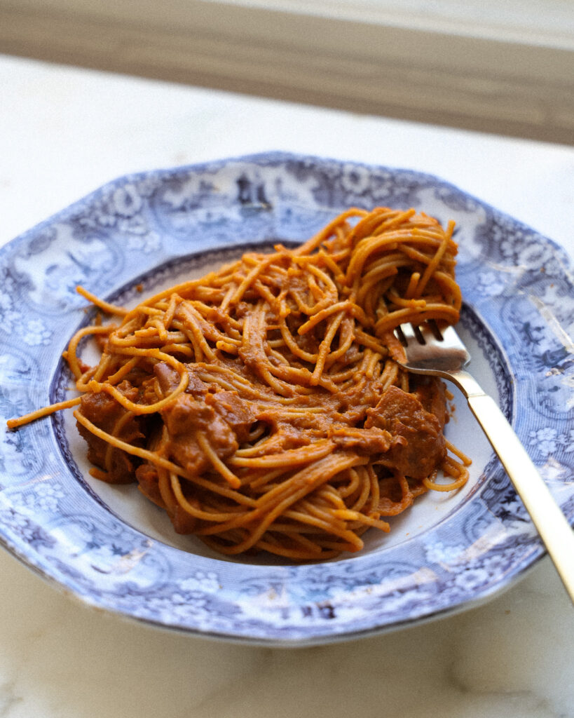 To keep this recipe consistent with what a ragu traditionally is, I opted to use vegetarian sausage. You can use any pork sausage you have as well and the result will be equally delicious. As a honeynut ragu, we lean on the sweetness of the aromatics to marry with the spiciness of the sausage, so it’s a fun take on a classic recipe!