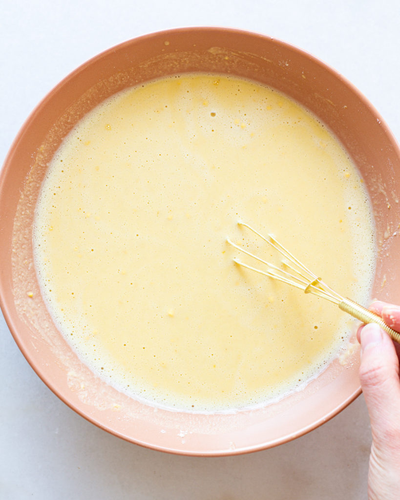 In this recipe I make socca entirely in the oven. It’s easiest with a non-stick pan or cast iron, and here is a step-by-step guide: