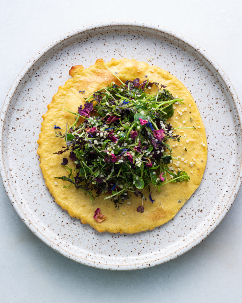- When the socca is finished, immediately serve with the salad on top and enjoy 🙂