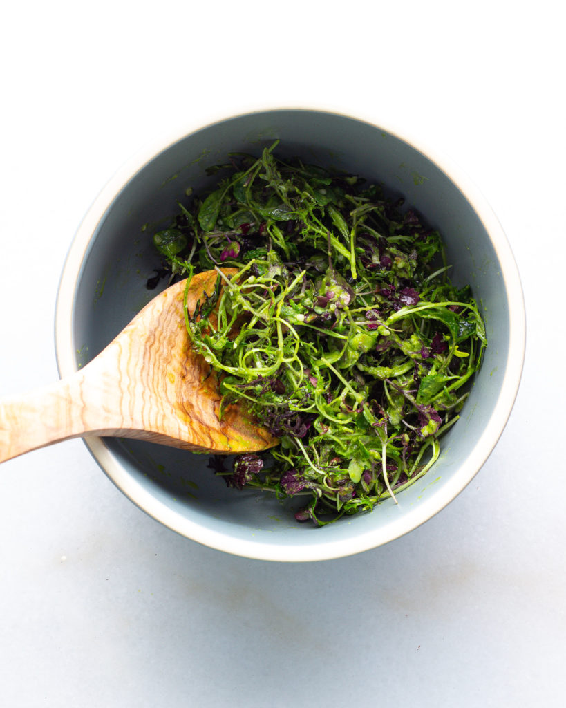 - 1/2 lb microgreens or salad greens of choice